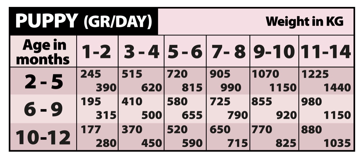 Veuillez noter que ce tableau posologique est indicatif et que la quantité de nourriture peut varier en fonction de l'activité, de la race du chien et des conditions environnementales. N'oubliez pas qu'une fois ouverte, vous devez réfrigérer la boîte contenant les aliments et la consommer dans les 48 heures. Assurez-vous que votre chien ait toujours un bol d'eau fraîche à disposition.